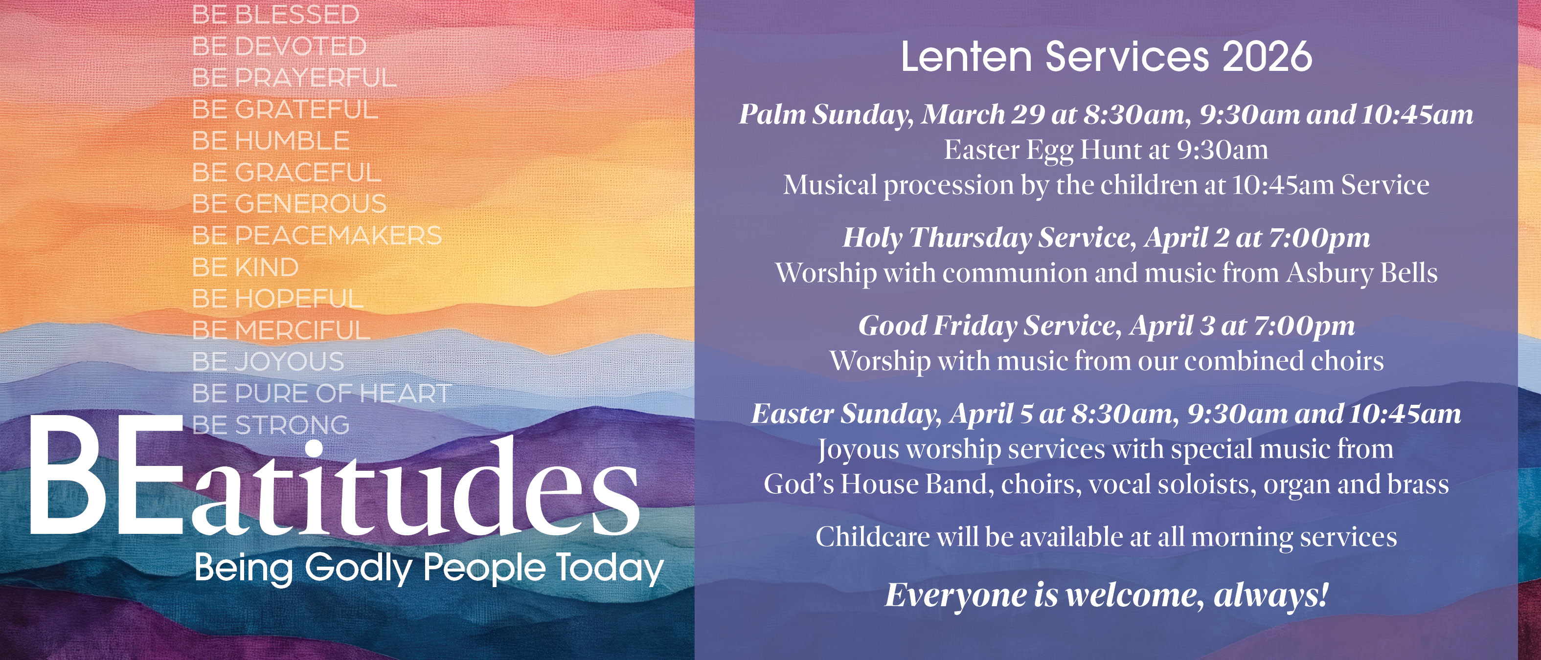 Please bring non-perishable food items to the church to be distributed locally to those in need.